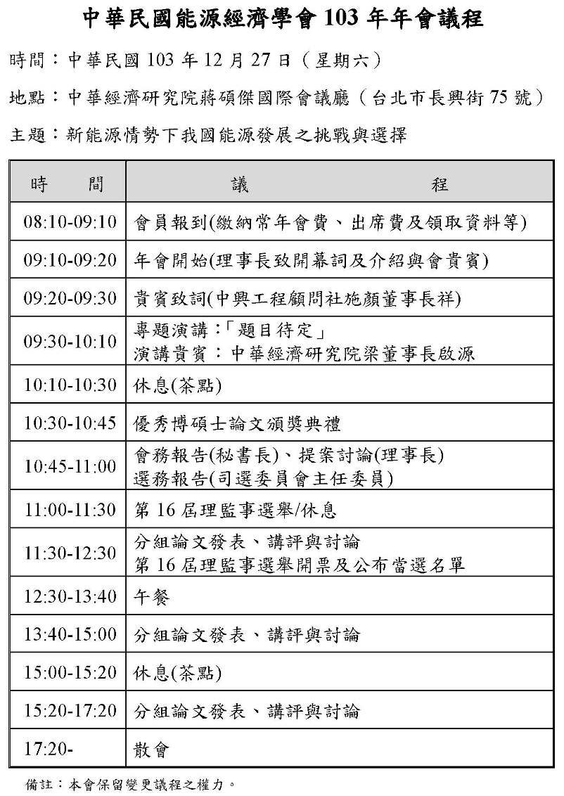 Copyright @ 2009 Chinese Association for Energy Economics 中華民國能源經濟學會 交通位置圖 地址:110207信義區松仁路3號11樓 電話:(02) 8725-8596 Mail:caeetw2011@gmail.com